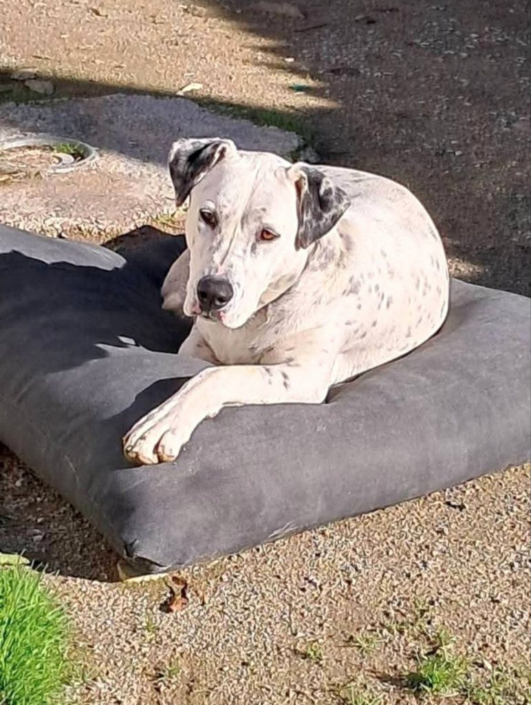 Geschlecht: Weiblich Geboren: 2023/2024 Größe: ca. 50 cm Gewicht: ca. 20 kg Kastriert: Ja Rasse: Herdenschutz-Mix Aufenthaltsort: Foteini